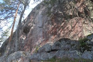 Hvitträskin järven rannan pohjoispuolella sijaitsee Suomen toiseksi vanhin kalliomaalaus heti Juusjärven jälkeen. Kävin Markon ja Matiaksen kanssa katsastamassa tämän 16.8.2019.