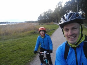 Pyöräilimme Juliuksen kanssa Espoon Kirkkojärveltä Kauklahteen, josta edelleen Soukkaan ja sieltä Espoon etelärantaa seuraillen Tapiolaan asti. Matkalla kohokohtia olivat Villa Rulludd, Iivisniemen epävirallinen hieno uimaranta Espoon Eskimoiden melontavajan läheisyydessä ja monet yleiset uimarannat matkan varrella. Kävimme Nokkalan majakassa mustikkapiirakalla pitämässä pienen tauon. Tapiolan läpi ajettuamme suuntasimme suoraan Kauniaisten kautta Bemböleen. Matkaa tuli yhteensä lähes 47 km ja aikaa meni noin 4,5 tuntia. Julius jaksoi hienosti vetää koko matkan vain pienillä pysähdyksillä 🙂