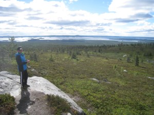 Seuraavana aamupäivänä kävimme ”huiputtamassa” Riisitunturin, josta avautui komeat 360 asteen panoraamanäköalat joka suuntaan, erityisesti Rukatunturin maisemat ja Kitkajärvi olivat hienoja. Kävin uimassa sekä Yli-Kitkan että Ali-Kitkan puolella ja jatkoimme Rukatunturille. Ajoittainen tihkusade oli taas läsnä. Sää onneksi selkeni, kun pääsimme tunturin laelle. Viimeksi kävin tällä tunturilla syksyllä 1991 🙂 Yövyimme paikallisen motellin yläkerrassa, jossa illalla Suomi-poppi jonkun aikaa häiritsi nukkumista, mutta aika nopeasti nukuimme iltasaunan jälkeen.
