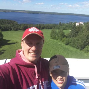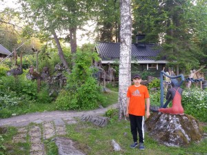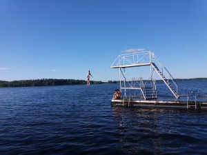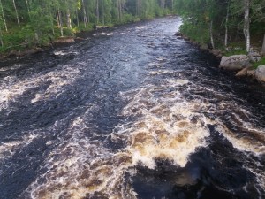 Tein Juliuksen kanssa retken Pohjois-Karjalaan. Aluksi kävimme Imatralla pulahtamassa Vuoksessa. Kovin pitkälle ei voinut uida, sen verran kova virtaus tässä joessa on aina päällä. Haarajoen museosilta Joensuun Tuupovaarassa oli yksi mieleenjäävä kohde. Kävimme Kiteenjärven uimarannalla, jossa oli iso laituri ja hieno hyppyrikin. Ilomantsissa tutustuimme Hermannin viinitorniin, jonka terassilta oli hieno näköala Ilomantsinjärvelle. Kävimme uimassa myös tässä hyvin matalassa järvessä. Juhannusaattoa vietimme Markon perheen mökillä Ilomantsissa. Saunoimme ja grillasimme aattoiltana. Mäkäräisiä piisasi enemmän kuin tarpeeksi 😦 Lauantaina tutustuimme Parppeinvaaran ulkomuseoon ja runonlaulajan taloon Ilomantsin keskustassa. Kävimme myös Möhkön museoalueella, joka on todella kaunis ja suositeltava kohde. Uin Koitajoessa tässä kohtaa olevan pienen kosken läpi sillan alitse. Vahvan myötävirran siivittämänä pääsin joen mutkaan asti josta nousin rantaan museolaivan takaa. Vanha höyrylaiva Ilmarinen on nähtävyyskohteena Möhkön järvimalmiruukkialueen rannassa. Möhkön Manta on kahvila, jonka yhteydessä on museorakennuksia sekä kaunis ulkoilureitti Lotinankosken sillalle ja Möhkön Arboretumiin, jossa on erilaisia istutettuja puita ja pensaita. Ruhkaranta oli hyvin autio, uintiretkeltä tarttu mukaan Real Madrid- merkkinen partavesipullo rantavedestä. Partavedessä riitti potkua vielä myöhemminkin kun käytin sitä Marko valitteli että otti nenään enemmän kuin tarpeeksi 😉