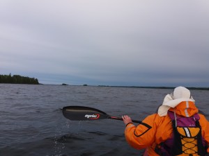 Maanantaina kävin uimassa ja söimme aamiaisen katoksen alla kanavan kupeessa. Meloimme kanavan läpi aluksi ja jatkoimme kohti Kiesimän kanavaa. Kävin uimassa Kiesimän järvessä kun pidimme pienen tauon ennen kanavan läpi melontaa. Paikalla on myös grillikatos ulkoilijoille. Pohjois-Konneveden läpi meloessamme piti ohittaa petolliset Murhaluodot, kun katsoin taivaalle ja luulin synkän pilven menevän ohi, kun se olikin suoraan yläpuolellamme. Alkoi niin kova sade että näkyvyys hävisi hetkeksi täysin ja puhuri skannasi editsemme. Onneksi aallokko oli matalaa mutta sade oli todella poikkeuksellisen kova. Neiturin kanavalla pidimme tauon ja söimme lounasta. Neiturin kanava on kaunis alue, siellä on myös vanhoja juoksuhautoja hieman kauempana. Tulimme Lavianselälle jossa oli aurinkoista mutta 7-8 metrin sivutuuli joka oli aika hankala pitkällä Starillani. Ohjasin varmuuden vuoksi lähemmäksi rantaa kun ohitimme Pängätsalon pohjoispuolelta. Yövyimme Viukarinsaarilla, jossa oli saunamökki ja kota. Yövyin Esan ja Minnan kanssa kodassa ja Esan hyttyskarkote toimi hyvin. Vesi oli yllättävän viileää kun kävimme saunasta uimassa.