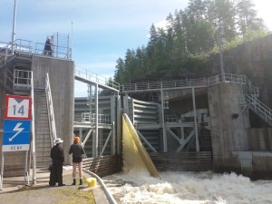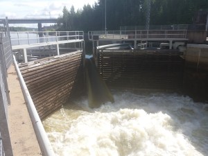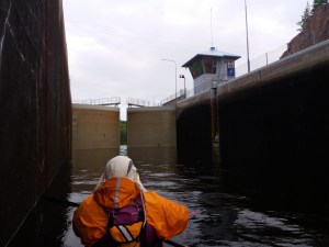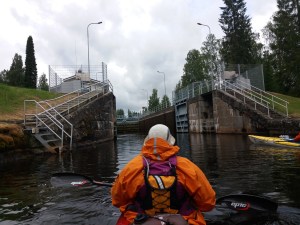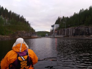 Sunnuntaina tuli vastaan ensimmäinen sulku, Kolun kanava ja Tervon kirkon kylä. Kävimme lounastamassa Tervon kylällä ja kävin uimassa samalla Rasvangissa. Meloimme Pulkkilansaaren länsipuolelta Iisveden poikki Saikarinniemen pohjoispäähän ja meloimme Tervolan kanavan läpi. Tämä kanava oli lähinnä pieni uoma, joka kuitenkin nopeuttaa merkittävästi matkantekoa erityisesti kajakilla. Niiniveden ylitys oli hieno. Päädyimme Kerkonkosken kanavalle yöksi. Nukuin Esan kanssa pukukopissa ulkona, muut katoksen alla. Yöllä satoi kaatamalla. Onneksi aamulla oli tyyni.