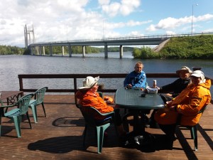 Perjantaiaamuna alitimme ison sillan ja pidimme heti tauon sillan kupeessa olevassa kahvilassa Lintusaaressa. Sitten alkoikin Vanhanselän vastatuuliosuus, yritimme saada suojaa rannan lähellä olevista saarista mahdollisimman paljon. Meloimme Vuorissaloon, jossa oli hieno sauna, grillikatos ja ranta. Saunoimme ja uimme sekä grillasimme.