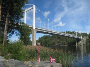 Kävin soutamassa Saimaa-soudussa Mikkelin Airoteamin kirkkoveneessä. Pääsimme lähtemään paalupaikalta väliaikalähdössä, mutta lopulta tipuimme kärjestä kolmen kuuden kierroksen lenkin jälkeen kuudenneksi ajalla 1.10.17. Kirkkovarkauden silta oli komea lähtöpaikka ja kalliolle oli aseteltu kivoja pinkkejä terästuoleja koristeeksi.