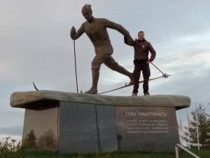 Torstaina 15.10.2020 jatkoimme matkaa Ylitornioon, jossa oli hieno kolmen järven maisemakierros. Kävin uimassa Miekojärvessä, Iso-Vietosessa ja Raanujärvessä. Sen jälkeen jatkoimme Pelloon ihastelemaan hiihtäjälegenda Eero Mäntyrannan patsasta. Tämä oli ns. perinteinen komea näköispatsas, Haapajärvellä ollut Mika Myllylän patsas oli liian erikoinen omaan makuuni. Pellossa oli kaunis jokimaisema keskustan kohdalla, mutta muuten paikka oli hyvin pieni. Kävimme Kolarissa tutustumassa Kolarinsaareen, joka oli vaikuttava pimeälläkin. Siellä oli pieni kirkko. Saaresta avautui idylliset maisemat lähes joka suuntaan. Sitten ajoimme yöksi Äkäslompoloon lomakylään 7 Fells Hostelsin virtaparkkiin. Äkäslompolossa on komea seitsemän tunturin näkymä eri ilmansuuntiin.