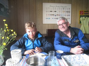 Kalastusta suomalaisittain ja norjalaisittain. Julius ja kalaretken isäntämme Arnt-Eirik Rornes turska-aterialla.