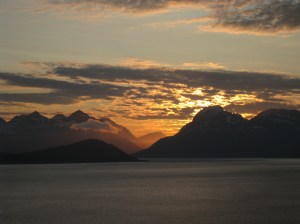 Auringonlasku Pohjois-Norjassa