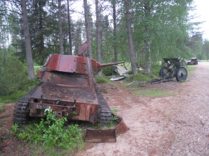 Raatteen tien vanhaa paikalleen jäänyttä sotakalustoa vuodelta 1939-1940 museon pihalla.