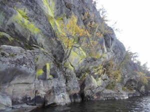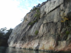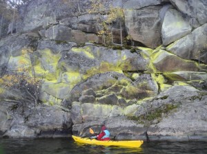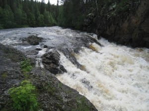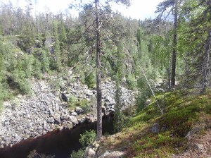 Kiutakönkään alajuoksu. Punainen graniitti kalliossa kiinnitti erityisesti huomiota.