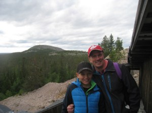 Kiirunan kaupunki oli erikoinen vanha rautamalmin kaivoskaupunki, jota ollaan siirtämässä maan vajoamisen vuoksi. Näimme Narvikin ja Kiirunan välisen rautatien, joka on merkittävä osa maiden välistä taloushistoriaa. Kiirunan rakennusten, mm. kirkon siirtäminen tuntuu aika uskomattomalta suunnitelmalta, miten sellainen onnistuttaisiin tekemään. Kiirunasta oli näköala kiikareilla myös Ruotsin korkeimmalle tunturille Kebnekaiselle. Kävimme kebab-pizzeriassa ja jatkoimme matkaa kohti kotimaata. Seuraavaksi ajoimme Tornioon, jossa vanha melontakaverini Salosta Mika Lähdekorpi asuu ja saimme yöpyä hänen luonaan. Kiitokset vielä tästäkin 🙂 Kävimme uimassa seuraavana päivänä Tornionjoessa kaupungin viihtyisällä uimarannalla.