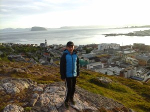 Julius Hammerfestissa. Kaunis erikoise muotoinen saari taustalla