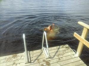 Julius uimassa Vuokatin Nuasjärvessä juhannuspäivänä 2019