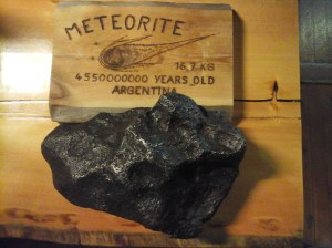 5.5 miljardia vuotta vanha 16,7 kiloa painava Argentiinasta löydetty meteoriitti Tankavaaran kultamuseon ravintolassa.