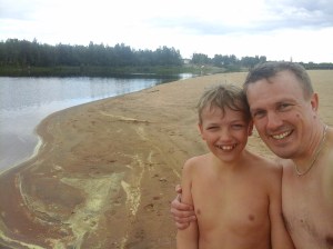 Julius ja Kuhmon Lentuan järvi. Kävin uimassa tässä. Järvi on kaunis ja erämainen niin kuin kuvasta näkyy.
