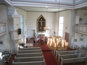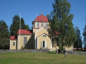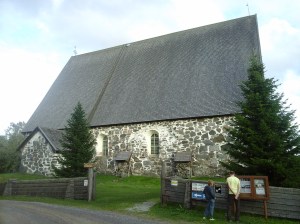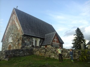 Saavuimme Uukuniemelle illalla, ensimmäiseksi tuli vastaan vanha puukirkko, jota kävimme katsomassa.