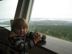 Kävimme Puijon tornissa Päivin ja Magnuksen kanssa 28.7.2018. Tutustuimme myös Kuopion tuomiokirkkoon ja korttelimuseoon. Sitten jatkoimme Maaningan pitäjään, joka on Savon vanhin pitäjä. Kävimme tutustumassa Korkeakoskeen, joka on Suomen korkein vapaana virtaava vesiputous. Pitkästä hellejaksosta oli se etu, että normaalisi hyttysiä vilisevä kosteikko oli kuiva kuin mikä eikä hyttysiä ollut kuin yhden käden sormilla laskien. Toisaalta putouskaan ei ollut mikään järisyttävä keskikesän helteillä.