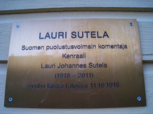 Keski-Suomen maakuntaretkellä Äänekosken Suolahdella oli vanha rautatieulkomuseo. Sattumalta huomasin, että Puolustusvoimien entinen jo edesmennyt komentaja, kenraali Lauri Sutela oli syntynyt tässä rautatietyöläisten asuttamassa pienessä kylämiljöössä lähes päivälleen sata vuotta sitten 11.10.1918. Lauri Sutelasta on lämmin omakohtainen muisto, kun hän oli vieraanamme Varsinaissuomalaisen osakunnan kuntaillassa 2.12.2009 Helsingin Uudella ylioppilastalolla.