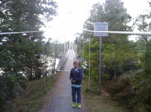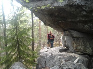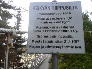 Taidemaalari Emil Danielsson rakennutti vuonna 1906 Karkun Pirunvuorelle kivilinnan, joka on nykyisin edelleen muistona taideateljeena. Pirunvuorella oli komeat näköalat kalliolta Rautaveden yli ja erityisesti kuuluisa luola, jossa kävimme tutustumassa. Suomen pisin riippusilta Keikyän kylässä vuodelta 1948 täytti myös tänä vuonna 70 vuotta ja hyvin kantoi edelleen 🙂