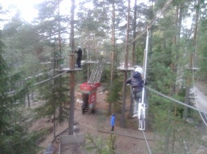 Kävin Juliuksen ja Dianan kanssa Leppävaarassa testaamassa seikkailupuistoa. Ehdimme kiertää viisi rataa kahdeksasta ja aluksi jännittikin jonkin verran, mutta hienosti lopulta pääsimme läpi mitä yritimmekin. Erityisesti jäi mieleen Dianan Tarzan-vaijerin liuku minun perässäni kun tuli jo hämärä, mutta onneksi sekin onnistui. Julius kiipesi kanssani myös hyvin pimeän jo tultua alarinteen puolella.