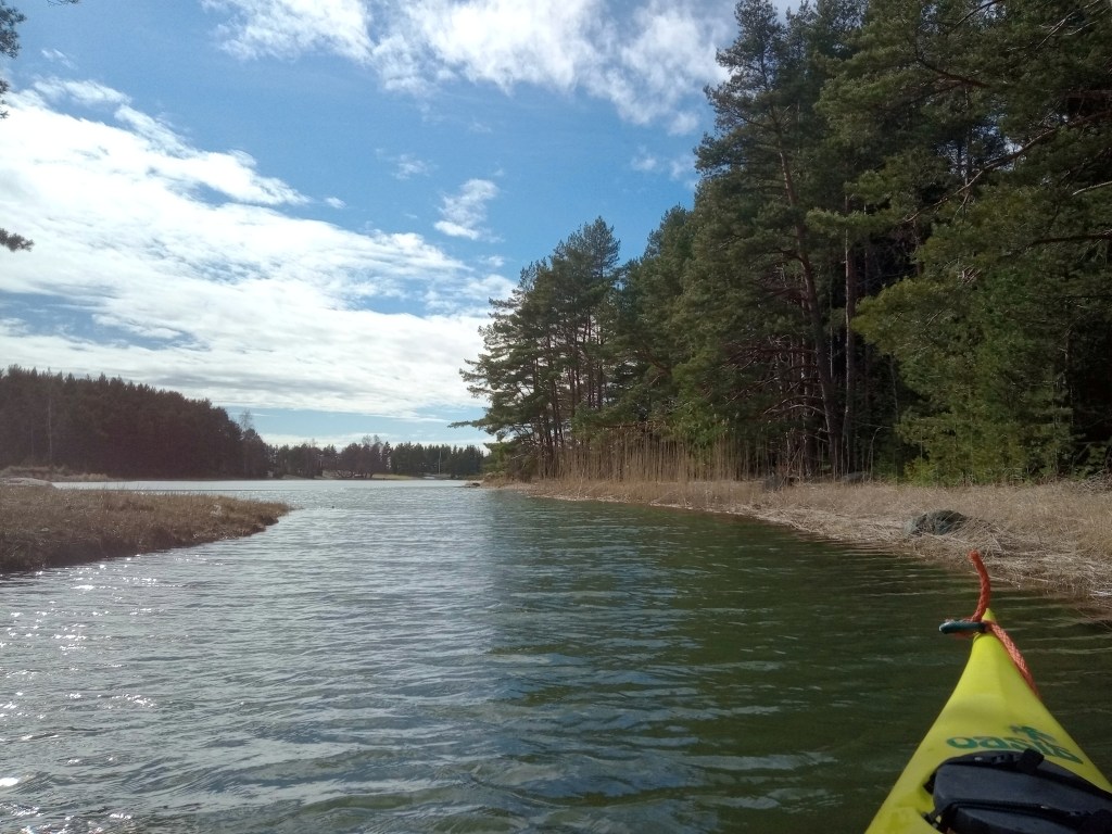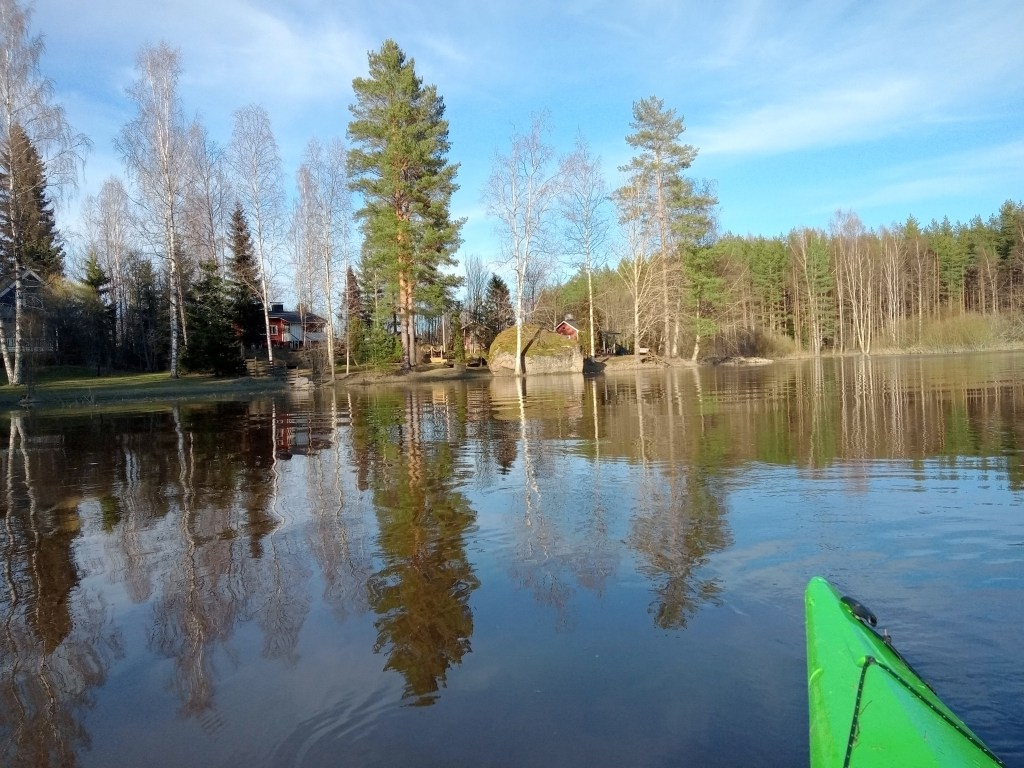 Synttäripäivän kunniaksi avasin melontakauden aurinkoisena päivänä. Lähdimme Petri Sutisen kanssa melomaan Kopparnäsistä, meloimme aluksi kauniin kapeikon läpi Högbrändön ja Rövarlandetin välistä ja rantauduimme Porsön kaakkoisrantaan Ryssklobbenin lähelle, jossa oli myös pieni retkipöytä ja penkki. Jatkoimme kapeikosta Vormön pohjoispuolelta takaisin, matkaa tuli lähes 20 km.