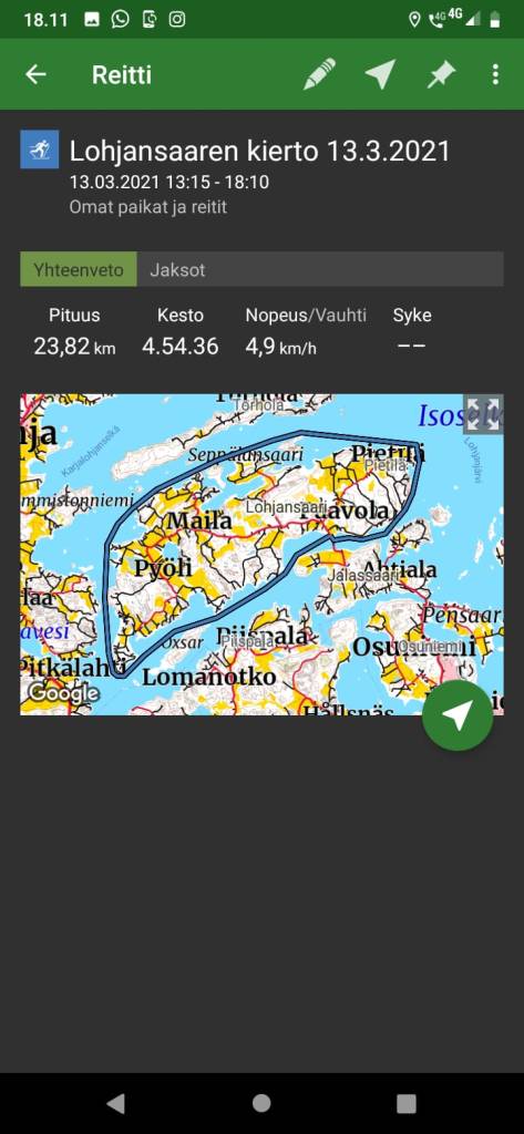 Pirkan hiihto harmillisesti peruttiin myös reppuversiona koronan takia joten siksi teimme korvaavan hiihtoretken Lohjansaaren ympäri Jari Pihlajamäen kanssa. Lähdimme sillan kupeesta liikkeelle ja kiersimme saaren vastapäivään. Lunta oli hieman ja jonkin verran railoja. Nihkeä ja hidas hiihtokeli mutta kävipä ainakin kuntoilusta. Matkaa meni lähes viisi tuntia ja pituutta tuli melkein 24 km.