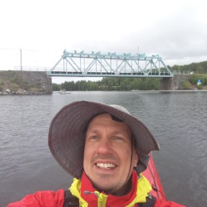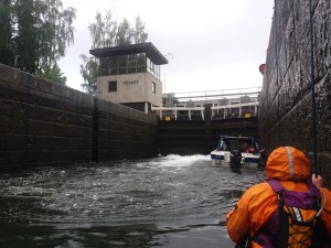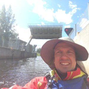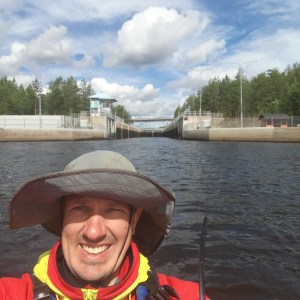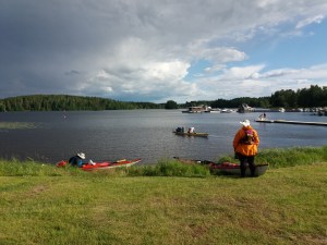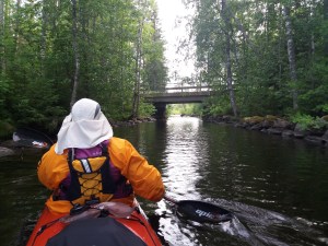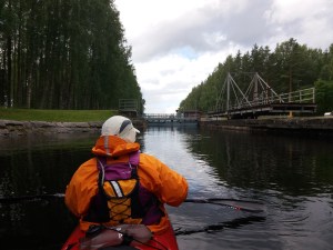 Sunnuntaina tuli vastaan ensimmäinen sulku, Kolun kanava ja Tervon kirkon kylä. Kävimme lounastamassa Tervon kylällä ja kävin uimassa samalla Rasvangissa. Meloimme Pulkkilansaaren länsipuolelta Iisveden poikki Saikarinniemen pohjoispäähän ja meloimme Tervolan kanavan läpi. Tämä kanava oli lähinnä pieni uoma, joka kuitenkin nopeuttaa merkittävästi matkantekoa erityisesti kajakilla. Niiniveden ylitys oli hieno. Päädyimme Kerkonkosken kanavalle yöksi. Nukuin Esan kanssa pukukopissa ulkona, muut katoksen alla. Yöllä satoi kaatamalla. Onneksi aamulla oli tyyni.