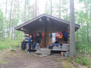 Lähdimme pizza-aterian jälkeen liikkeelle lauantaina 4.7. Pielaveden pienvenesatamasta ja alitimme pian ensimmäisen sillan. Hirviniemessä oli komea hiekkaranta ja grillikatos jossa pidimme tauon. Jatkoimme eteenpäin kohti etelää ja Hirviniemen jälkeen alkoi sataa enemmän ja tuullakin ihan kunnolla vastaista ristiaallokkoa. Olimme ensimmäisen yön Manginniemen laavulla. Illalla alkoi sataa ja oli aika kastellun koiran kaltainen olo kun kuoriuduimme kamppeista laavulla syömään ja lopulta lämmittelemään.