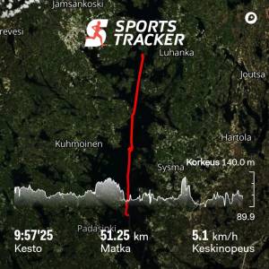 Meloimme Kymennauhan heinäkuun alussa vaihtelevassa säässä. Matkaan mahtui niin aurinkoa kuin sadetta, niin tyyntä kuin myräkkääkin. Matkaa kertyi yhteensä 384 km. Minna Joensuu meloi etumelojanani ja Sisko perinteisesti Matin etumelojana. Esa Härmä meloi yksiköllä.
