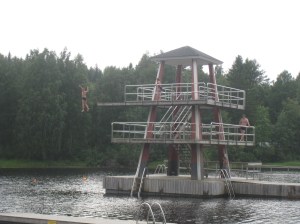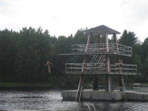 Tein Juliuksen kanssa retken Pohjois-Karjalaan. Aluksi kävimme Imatralla pulahtamassa Vuoksessa. Kovin pitkälle ei voinut uida, sen verran kova virtaus tässä joessa on aina päällä. Haarajoen museosilta Joensuun Tuupovaarassa oli yksi mieleenjäävä kohde. Kävimme Kiteenjärven uimarannalla, jossa oli iso laituri ja hieno hyppyrikin. Ilomantsissa tutustuimme Hermannin viinitorniin, jonka terassilta oli hieno näköala Ilomantsinjärvelle. Kävimme uimassa myös tässä hyvin matalassa järvessä. Juhannusaattoa vietimme Markon perheen mökillä Ilomantsissa. Saunoimme ja grillasimme aattoiltana. Mäkäräisiä piisasi enemmän kuin tarpeeksi 😦 Lauantaina tutustuimme Parppeinvaaran ulkomuseoon ja runonlaulajan taloon Ilomantsin keskustassa. Kävimme myös Möhkön museoalueella, joka on todella kaunis ja suositeltava kohde. Uin Koitajoessa tässä kohtaa olevan pienen kosken läpi sillan alitse. Vahvan myötävirran siivittämänä pääsin joen mutkaan asti josta nousin rantaan museolaivan takaa. Vanha höyrylaiva Ilmarinen on nähtävyyskohteena Möhkön järvimalmiruukkialueen rannassa. Möhkön Manta on kahvila, jonka yhteydessä on museorakennuksia sekä kaunis ulkoilureitti Lotinankosken sillalle ja Möhkön Arboretumiin, jossa on erilaisia istutettuja puita ja pensaita. Ruhkaranta oli hyvin autio, uintiretkeltä tarttu mukaan Real Madrid- merkkinen partavesipullo rantavedestä. Partavedessä riitti potkua vielä myöhemminkin kun käytin sitä Marko valitteli että otti nenään enemmän kuin tarpeeksi 😉