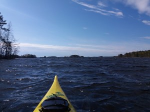 Meloin Oasiksella tämän Salonsaaren ympäri. Sää oli kirkas mutta tuuli oli haaste. Lähdin aluksi kiertämään saarta etelästä sillan kupeesta myötäpäivään, mutta Asikkalan selältä puhalsi suora vastainen 7-9 metrin tuuli joten katsoin parhaimmaksi muuttaa suunnitelmaa ja lähteä vastapäivään. Täältä pääsin suojassa pitkän matkaa kauniiseen Luopostensalmen kapeikkoon asti, jonka sillan kohdalla iso kala (ehkä hauki) polskahti juuri kajakkini edessä. Meloin Venäjänniemen ja Vesansalon välistä. Pidin tauon Herrasaaressa, jonka jälkeen alkoi tiivis vastatuuliosuus Asikkalanselällä. Saaren pohjoispäässä vastatuuli alkoi kääntyä sivutuuleksi ja lopulta sain hieman myötäistä loppumatkalle.
