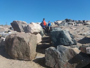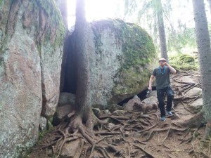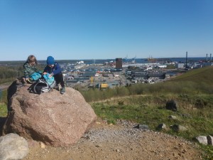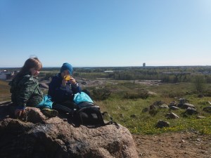 Julius, Magnus ja minä kävimme Markon ja Markuksen kanssa patikoimassa Vuosaaren korkeimmalla paikalla, josta avautui hienoat näköalat joka suuntaan. Tämän jälkeen kävimme tutustumassa Mustavuoren ensimmäisen maailmansodan aikaisiin venäläisten rakentamiin linnoituksiin ja luoliin.