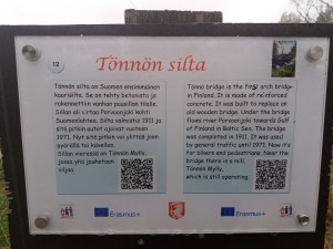 Kävimme tutustumassa Orimattilassa kulttuurinähtävyyteen Tönnön siltaan, joka vuonna 1971 suljettiin autoliikenteeltä ja tehtiin museosillaksi. Tönnön mylly on myös nähtävyys. Näitä on käytetty vanhojen Suomi-Filmien kuvauspaikkoina. Kävimme tutustumassa myös Orimattilan kotiseutumuseoon ja kirkkoon ulkoa päin sekä poikkesimme Dianan ja Nicolaksen kanssa Luumyllynkoskella vanhoilla myllynraunioilla.